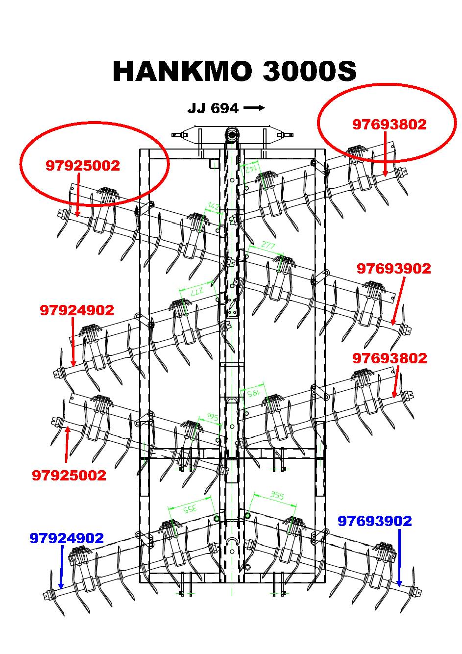 Hankmo 3000S etummaiset akselit määrä